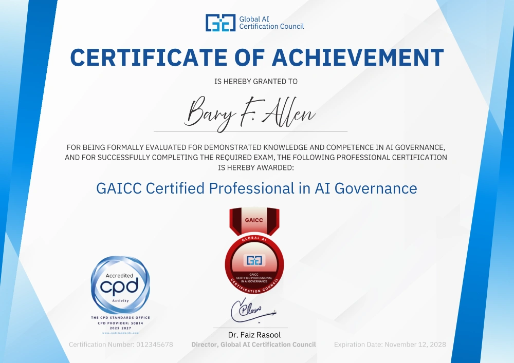 A globally certified instructor in ISO/IEC, PMI®, TOGAF®, SAFe®, and Scrum.org disciplines. With over three years’ hands-on experience in ISO/IEC 42001 AI governance, he delivers training and consulting across New Zealand, Australia, Malaysia, the Philippines, and the UAE, combining high-end credentials with practical, real-world expertise and global reach.