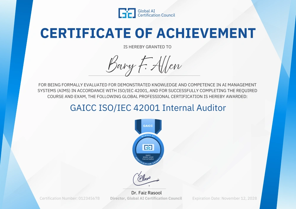 A globally certified instructor in ISO/IEC, PMI®, TOGAF®, SAFe®, and Scrum.org disciplines. With over three years’ hands-on experience in ISO/IEC 42001 AI governance, he delivers training and consulting across New Zealand, Australia, Malaysia, the Philippines, and the UAE, combining high-end credentials with practical, real-world expertise and global reach.