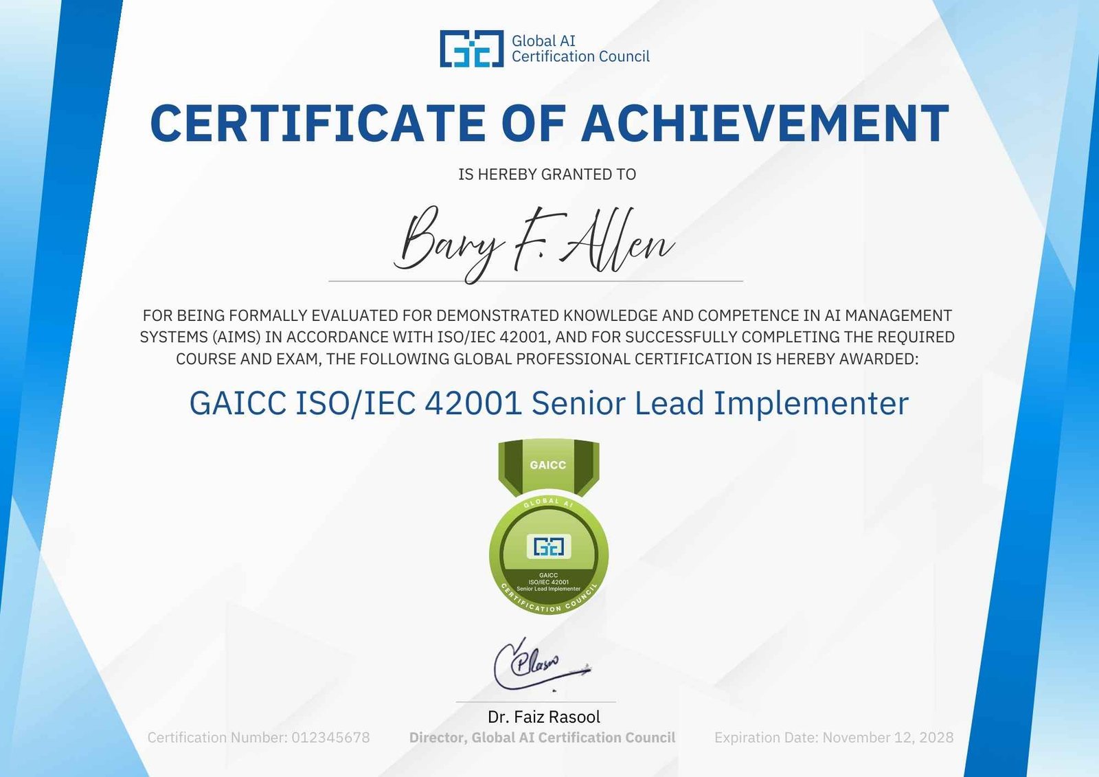 Director at the Global AI Certification Council (GAICC) and PM Training School